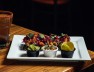 Jugosos tacos de arrachera, servidas con queso y champiñones acompañados con pico de gallo y aguacate.